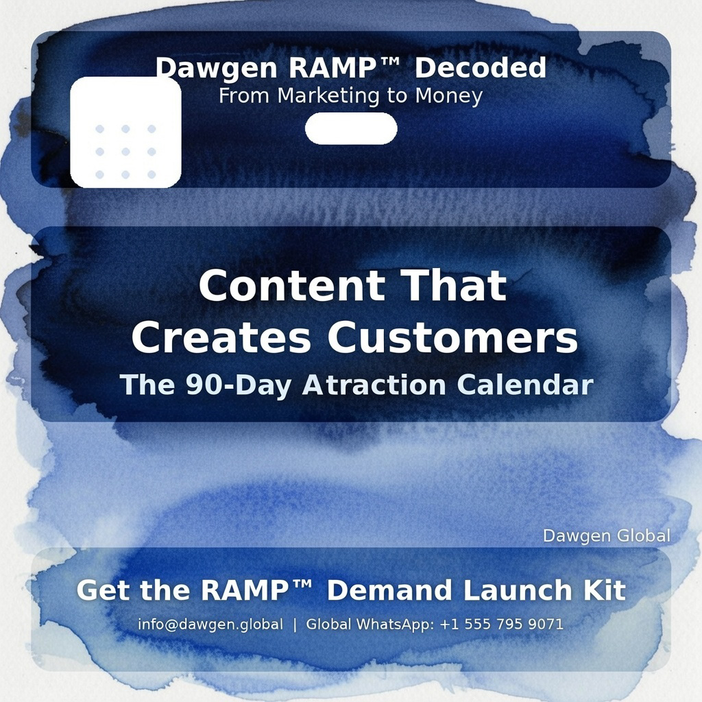 This article introduces Dawgen’s C2C Content-to-Customer SystemClarify → Convince → Convert—and a practical 90-Day Attraction Calendar that organizes content into three phases: Authority & Relevance (Days 1–30), Proof & Method (Days 31–60), and Conversion & Pipeline (Days 61–90). Each phase includes weekly output types and topic prompts that ensure your content consistently delivers diagnosis, framework teaching, proof, objection handling, and direct CTAs.