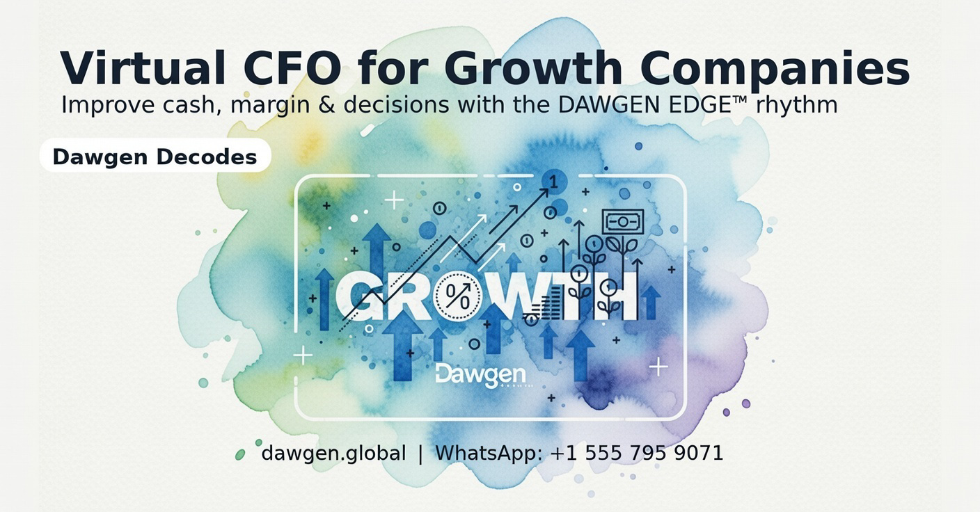 In this article, Dawgen Global sets out a practical, board-ready blueprint for implementing a Virtual CFO model using our DAWGEN EDGE™ Framework—Evaluate, Design, Govern, Enable, Execute & Evidence—so leaders can move from reactive finance to proactive management, improve working capital, protect margins, and make growth decisions with clarity.