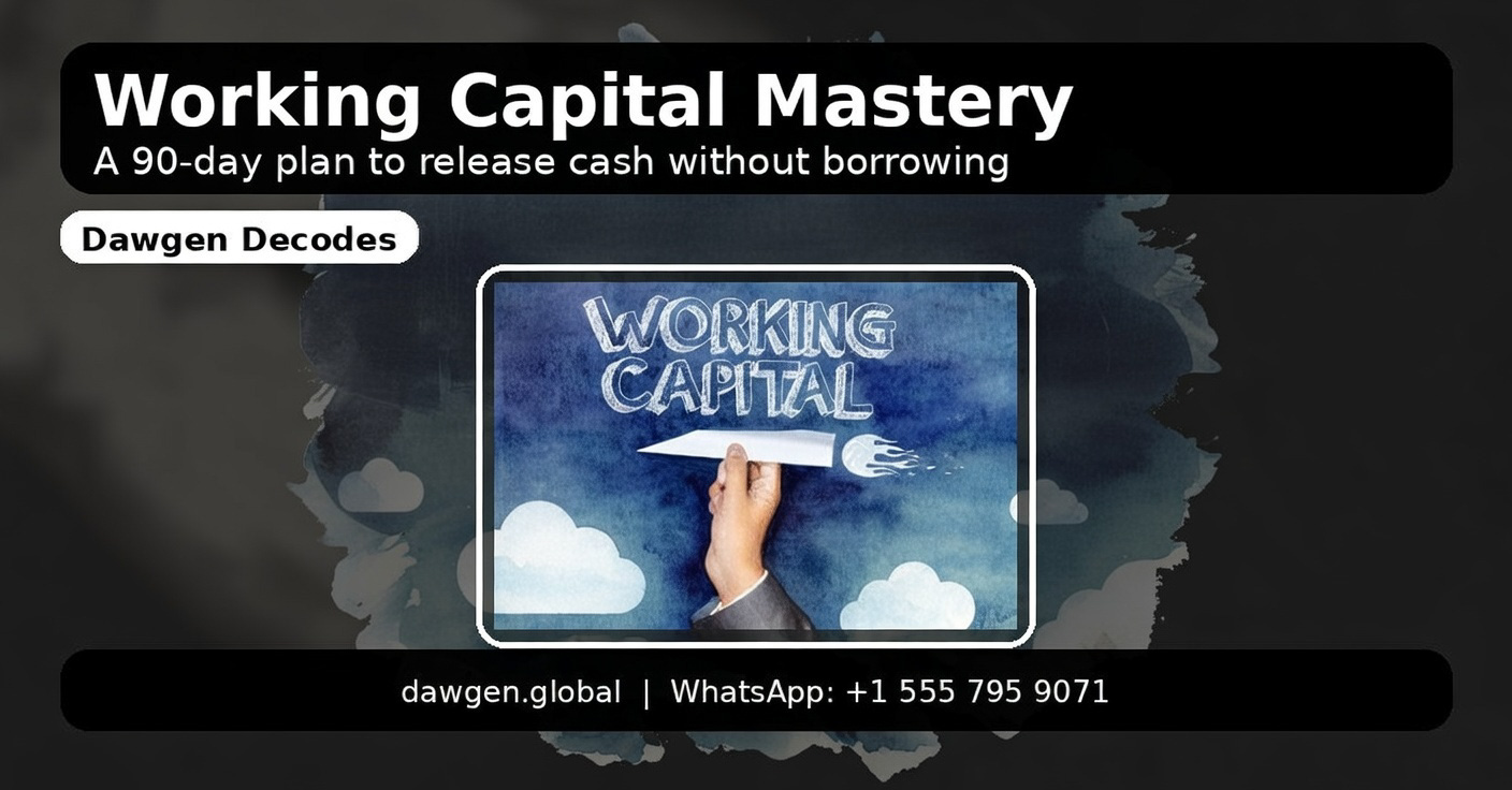 In this Dawgen Decodes article, Dawgen Global provides a practical, executive-ready 90-day plan to release cash without borrowing—using our DAWGEN EDGE™ Framework (Evaluate, Design, Govern, Enable, Execute & Evidence). You will learn the metrics that matter (DSO, DPO, inventory days, cash conversion cycle), the operational levers that unlock cash, and the governance practices that keep cash discipline permanent—not temporary.