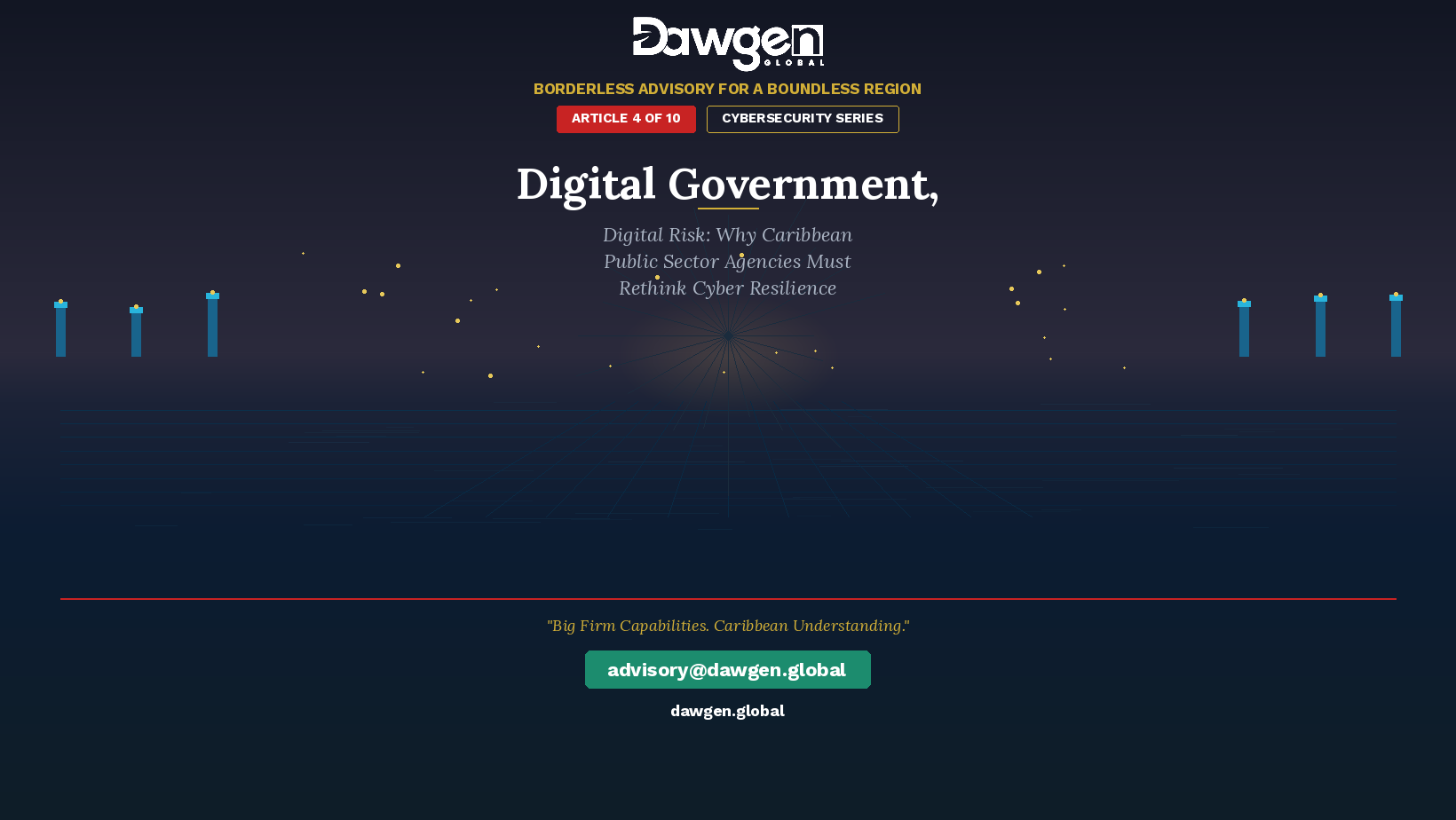 This fictional scenario, while not attributable to any specific Caribbean nation, reflects a pattern of vulnerability that Dawgen Global has identified across the region’s public sector digital transformation initiatives. As Caribbean governments race to digitise services and modernise citizen engagement, many are inadvertently creating expansive new attack surfaces without proportionate investment in cybersecurity.