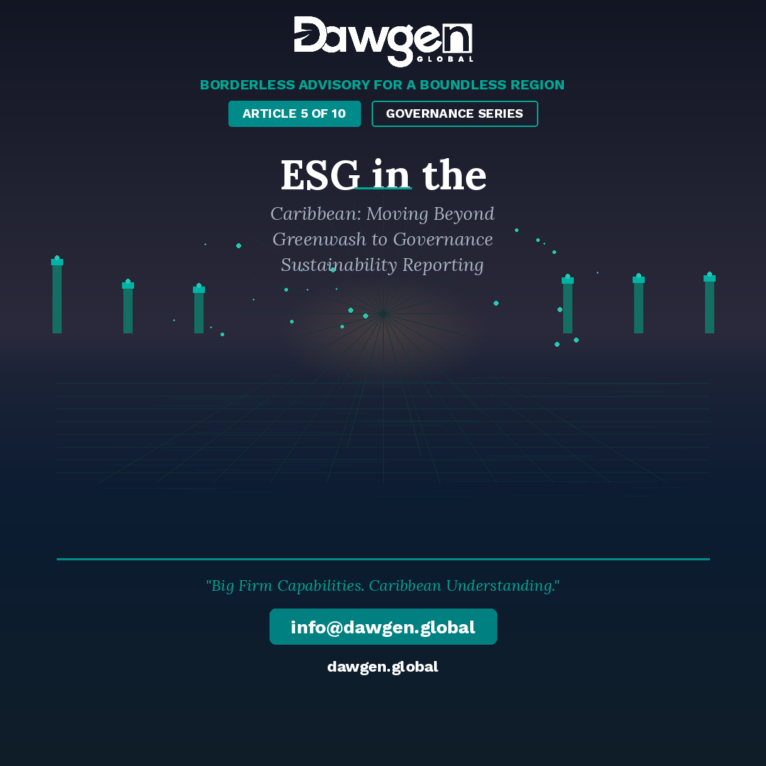 This fictional scenario, while not attributable to any specific Caribbean company, reflects a pattern that Dawgen Global is observing with increasing frequency across the region. Caribbean enterprises that are operationally excellent, financially sound, and genuinely committed to responsible business practices are being locked out of international markets, partnership opportunities, and capital sources because they lack the formal ESG governance and reporting frameworks that global stakeholders now require.
