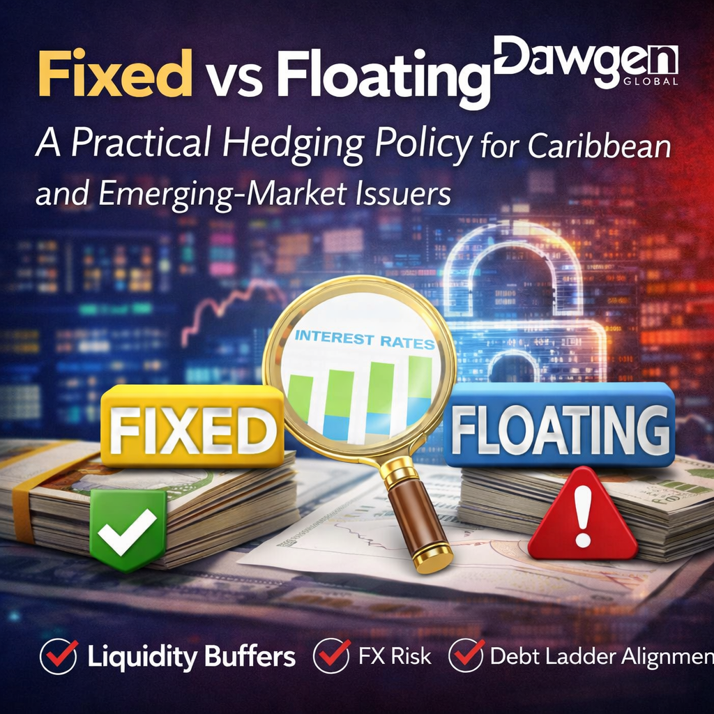 Choosing between fixed-rate and floating-rate debt is not a forecast contest—it is a risk allocation decision. Fixed-rate debt buys payment certainty but can lock in higher cost or reduce refinance flexibility. Floating-rate debt can start cheaper and offer flexibility, but it exposes cashflows to rate spikes that can trigger covenant pressure and liquidity stress. For Caribbean and emerging-market issuers, the decision is compounded by FX risk, thinner hedging markets, higher basis risk, and the reality that shocks often arrive simultaneously (rates up, currency weaker, working capital tighter). This article (Part 5 of Dawgen Global’s C.A.P.I.T.A.L. Architecture™ series) provides a practical, board-usable policy for setting the right fixed/floating mix and implementing hedges that protect liquidity and covenant headroom—without over-engineering.