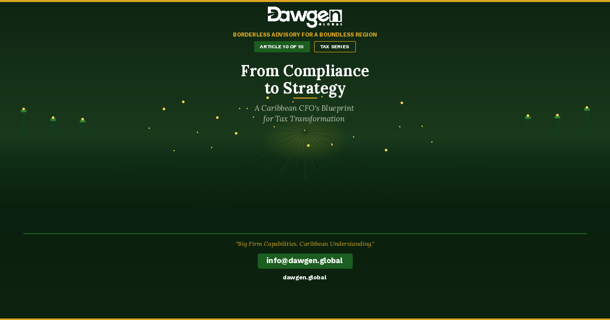 This article is the final instalment in the “Taxing Times: Strategic Tax Leadership for the Caribbean Enterprise” series. The series was produced by Dawgen Global as part of its commitment to advancing the quality of governance, risk management, and professional advisory across the Caribbean region. Previous series include “From Breach to Boardroom: Cybersecurity for the Caribbean Enterprise” and “Governing the Caribbean Enterprise.” All three series are available at www.dawgen.global.