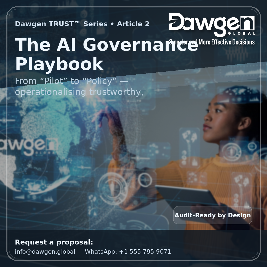 This article provides a practical playbook for operationalising the Dawgen TRUST™ Framework—so Caribbean organisations can move from experimentation to scalable, auditable, and trustworthy AI.