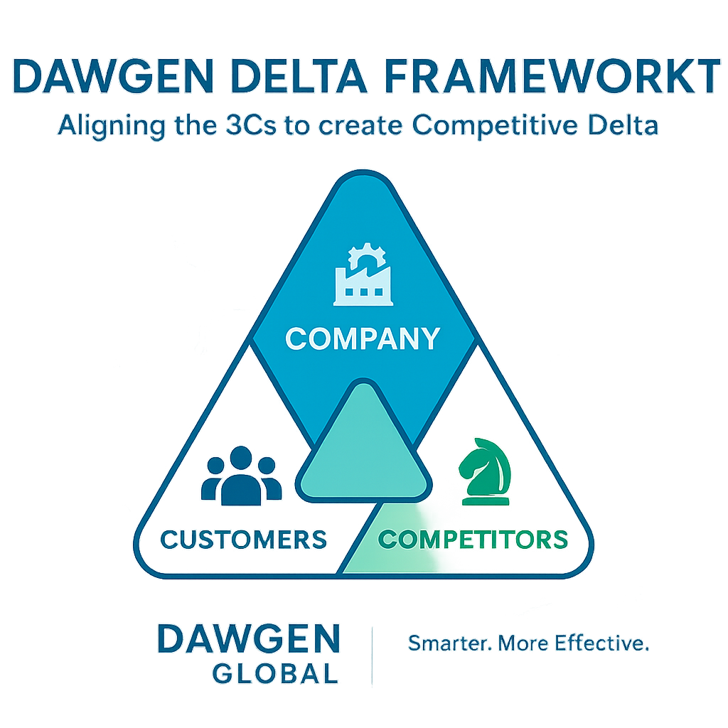 In every market, from Kingston to Kigali to Kansas, the most resilient companies share one discipline: they continuously create delta—the measurable gap between their performance and the industry norm. The Dawgen Delta Framework™ (3Cs) is our proprietary, practical system for doing exactly that. It synchronizes three levers—Customers, Company, and Competitors—then compounds results through repeatable operating rhythms, data-led decisions, and market-shaping moves.