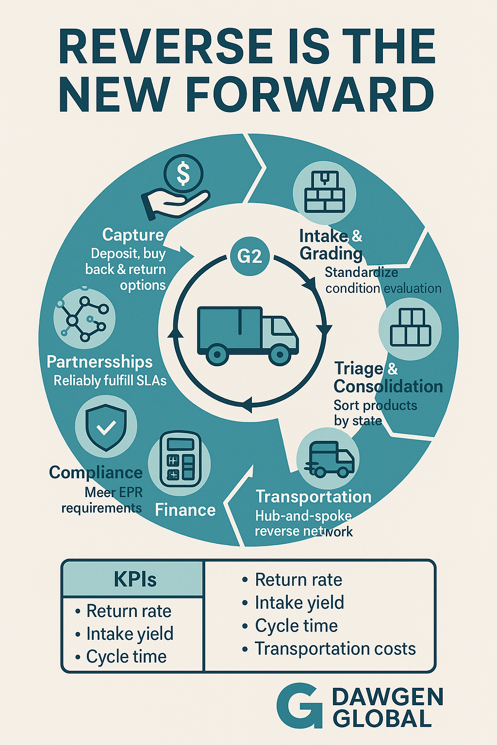 Circular economy strategies succeed or fail on the strength of their logistics. If customers can’t return products easily, if intake damages items, or if networks can’t handle variable volumes, then refurbishment, remanufacture, and high‑value recycling will never achieve reliable unit economics. Reverse logistics is not an afterthought to forward supply chains; it is an operating system for value recovery. This article presents Dawgen Global’s operating approach to designing and running reverse logistics as a competitive advantage—spanning capture, intake, triage, consolidation, transport, compliance, data, and partner orchestration. We also detail metrics, risks, and a 100‑day rollout plan to move from pilot to dependable performance.
