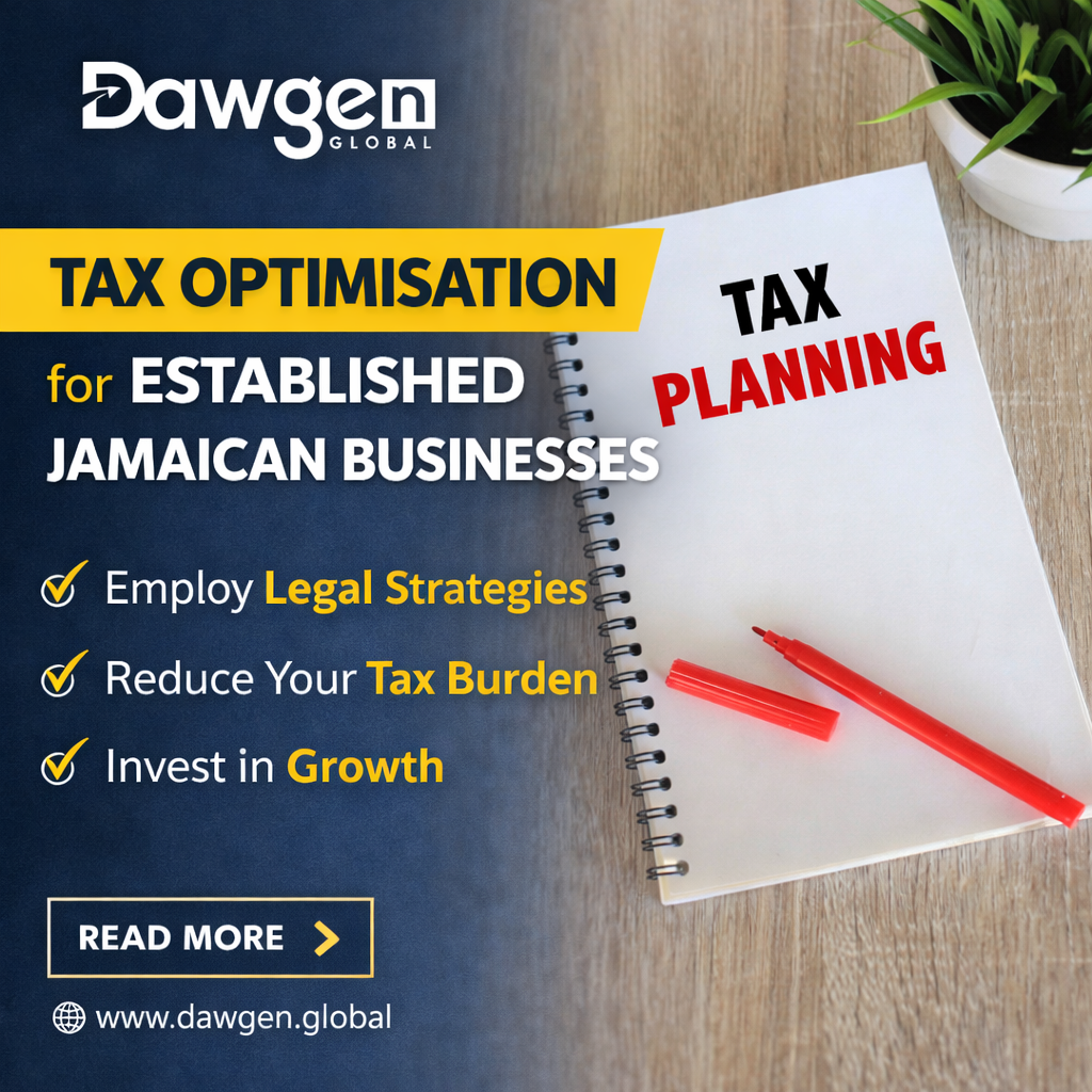 Dawgen Global’s Annual Tax Efficiency Review identifies every legitimate opportunity to reduce your Jamaican or Caribbean business tax burden — capital allowances, incentive programmes, group relief, remuneration structuring.