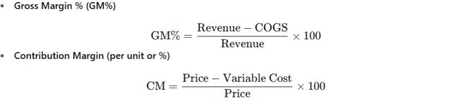 Use CM for promo/discount decisions; GM% for overall mix and sourcing.