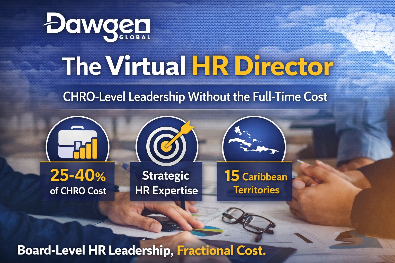 | The Virtual HR Director is Dawgen Global’s flagship PEOPLE360°™ offering — and the most distinctive HR advisory model available in the Caribbean market. It gives organisations the strategic HR leadership, the compliance infrastructure, the talent management capability, and the board-level HR intelligence of a Chief Human Resources Officer, delivered on a retained fractional basis that costs between 25% and 40% of a full-time equivalent package. This article explains what it is, what it does, who it is for, how the model works in practice, and why no alternative — in-house or outsourced — matches its combination of strategic depth, Caribbean expertise, and multidisciplinary integration. |