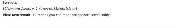 Ideal Benchmark: >1 means you can meet obligations comfortably.