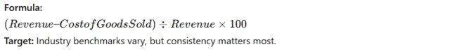 Why it matters: Indicates whether your pricing strategy covers your costs and generates a sustainable margin.