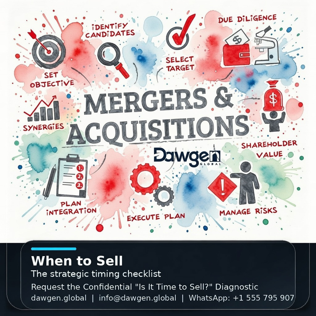 Owners often decide to sell based on fatigue, a competitor’s move, or an unsolicited offer. But the best exits are timed strategically—when the business can prove repeatable earnings, manageable risk, and a clear growth narrative. This article presents a practical “sell timing” checklist built around the Dawgen Global D.E.A.L.M.A.K.E.R. Framework™. It helps owners assess readiness across five pillars: (1) market timing, (2) business performance, (3) operational maturity, (4) risk and documentation, and (5) personal objectives. The goal is to answer one question with discipline: Is your business ready to command premium price and premium terms—now, or after a focused value acceleration plan?